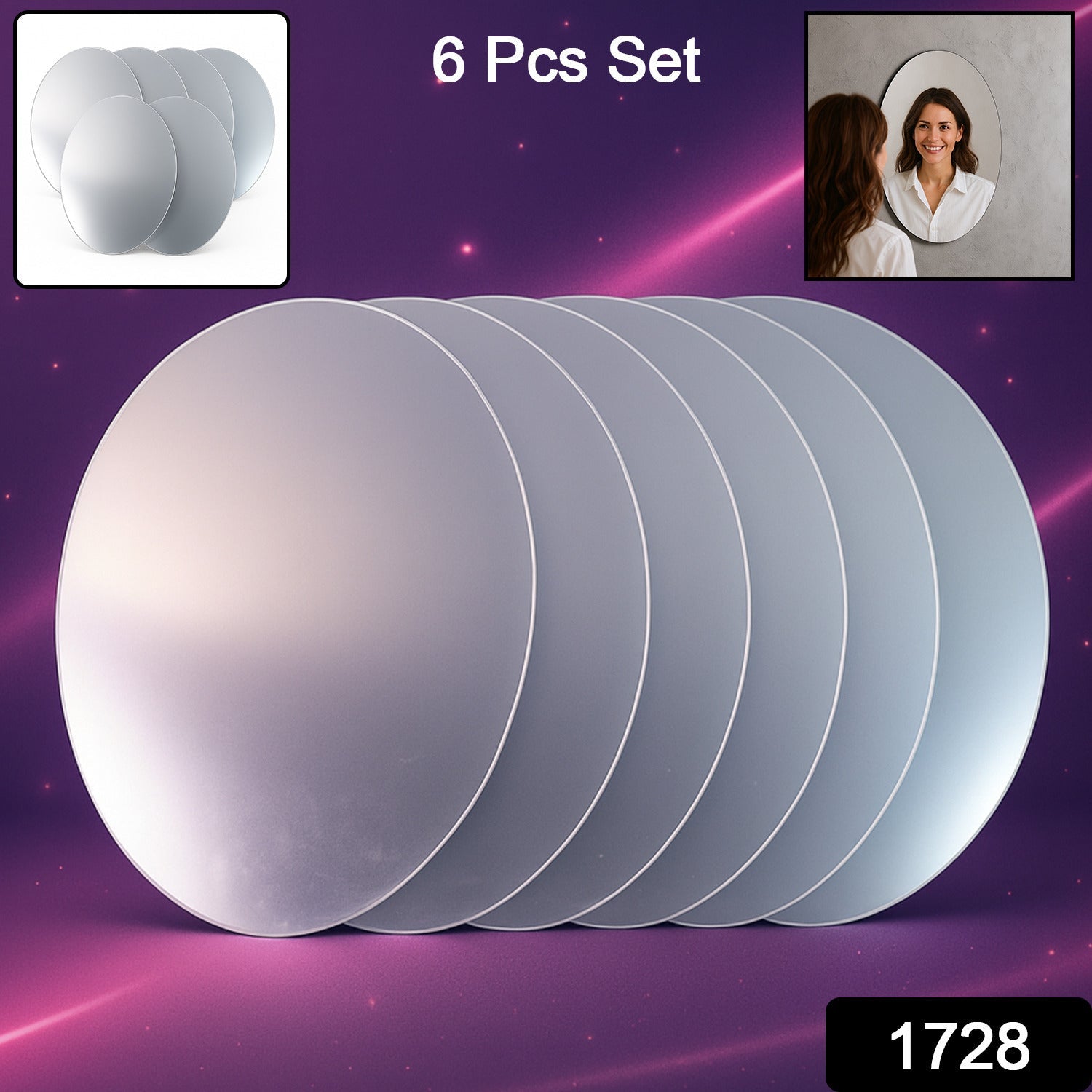 Elegant Oval Frameless Wall Mirror for Home & Office Decor – Sleek Glass Mirror for Bedroom, Living Room, and Vanity Use – 6 Pc
